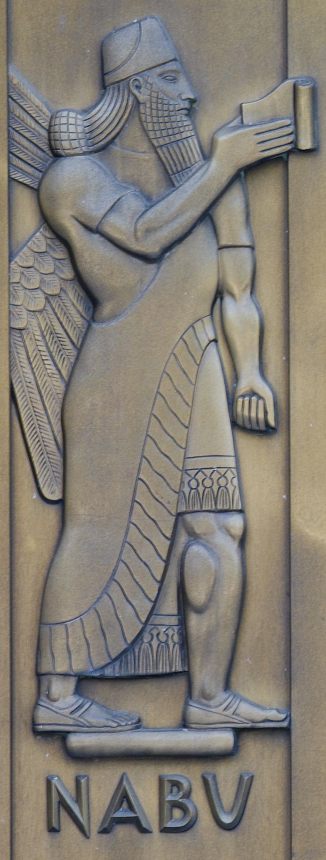 Nabu, or Nebo, sculpted bronze figure by Lee Lawrie. Door detail, east entrance, Library of Congress John Adams Building, Washington, D.C. Photographed 2007 by Carol Highsmith (1946–), who explicitly placed the photograph in the public domain. - Library of Congress, Prints & Photographs Division. http://en.wikipedia.org/wiki/Nabu#/media/File:Nabu-Lawrie-Highsmith.jpeg