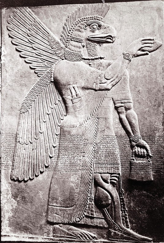 Stephen Thompson - Asshur, Assyrian God, Marble Relief, British Museum, 1872 The Catalogue of a Series of Photographs from the Collections of The British Museum (Photographed by S. Thompson), Part III, W.A. Mansell & Co, London, 1872, p. 30. In the Nimrud Gallery of the Museum, Eastern side, #355. B.C. 884.  Marble slab. Eagle-headed winged deity Asshur (the chief of all the Gods), holding cone and basket, (supposed to represent the receptacle in which the divine gifts are stored,) and standard inscriptions. https://www.flickr.com/photos/photohistorytimeline/10171487505/