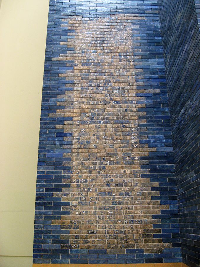 Building Inscription of King Nebuchadnezar II at the Ishtar Gate. An abridged excerpt says:  "I (Nebuchadnezzar) laid the foundation of the gates down to the ground water level and had them built out of pure blue stone. Upon the walls in the inner room of the gate are bulls and dragons and thus I magnificently adorned them with luxurious splendour for all mankind to behold in awe." https://en.wikipedia.org/wiki/Nebuchadnezzar_II