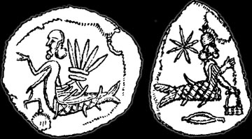 The first type, the human faced genius must be kept apart because these genii are depicted wearing a horned crown which explicitly marks them as divine.